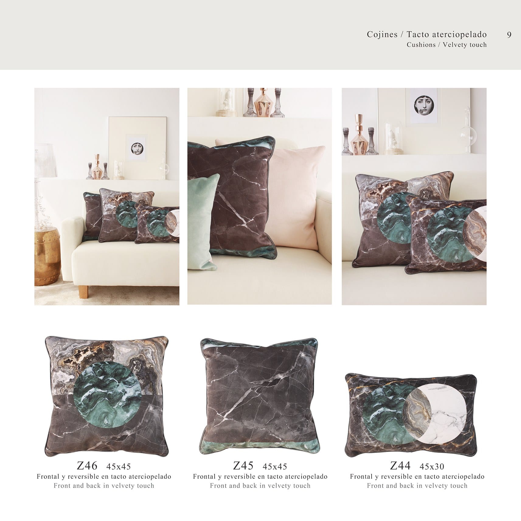 Almofada com uma frente suave e textura reversível com toque aveludado.