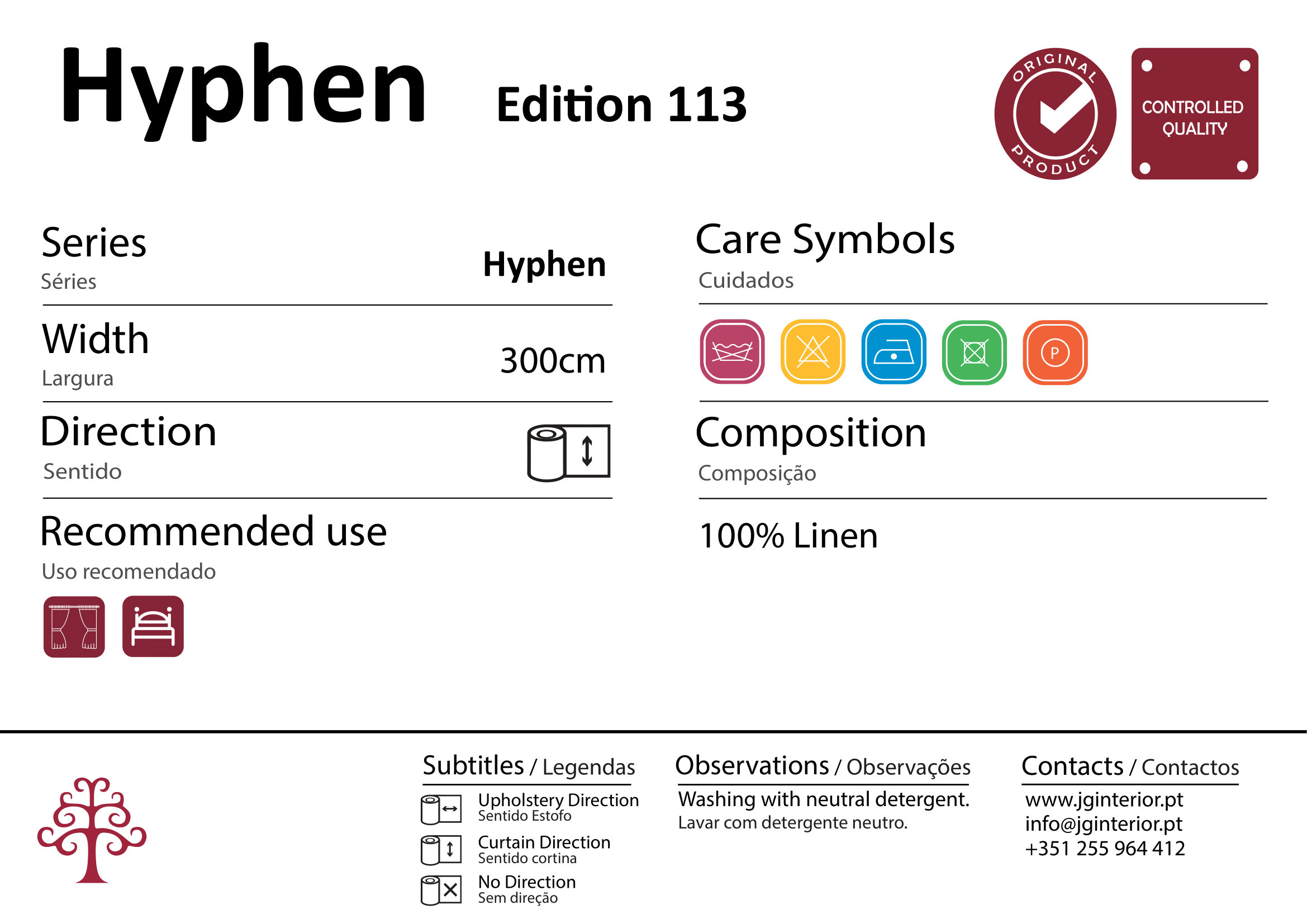 Cortinado com padrão. Disponível em várias cores.