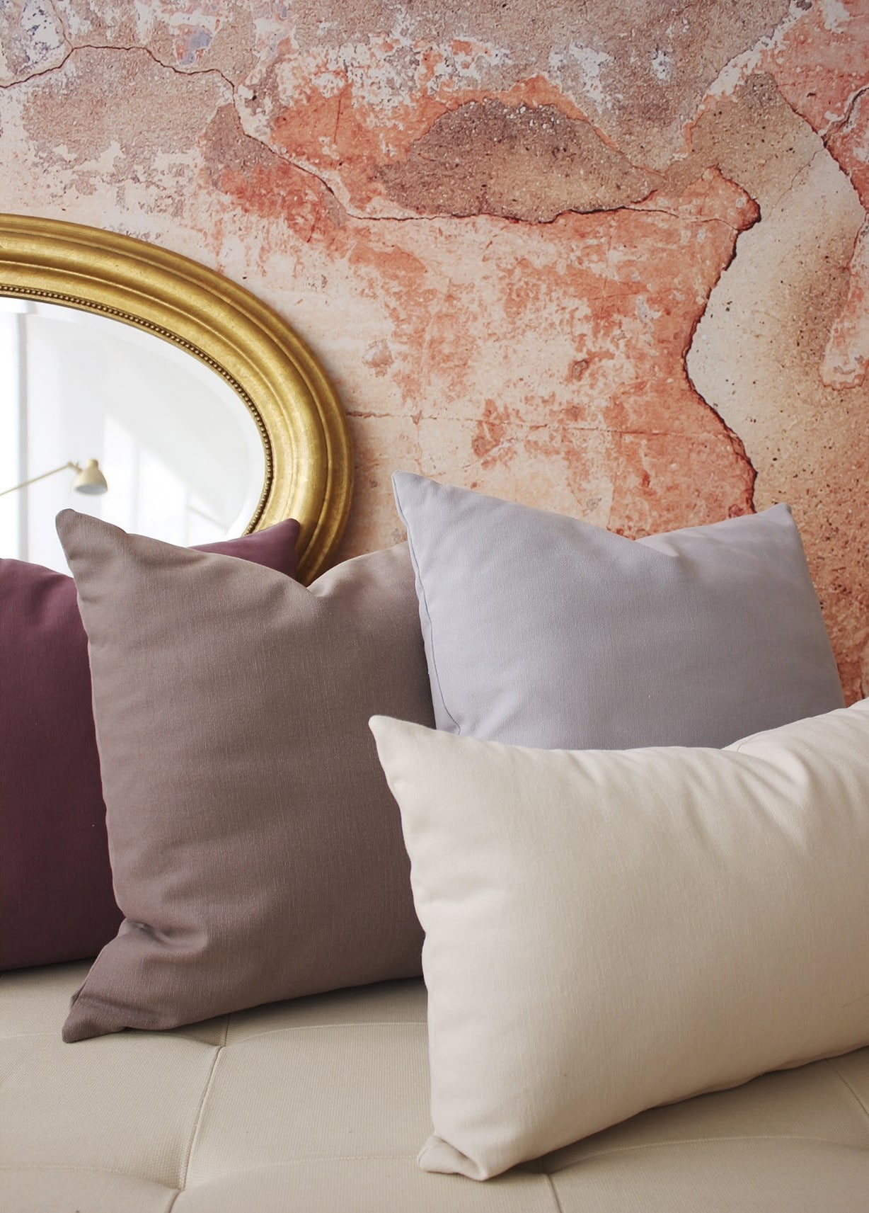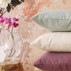 Almofada com uma frente macia e atraente e textura reversível com toque jacquard.