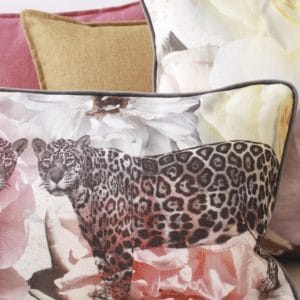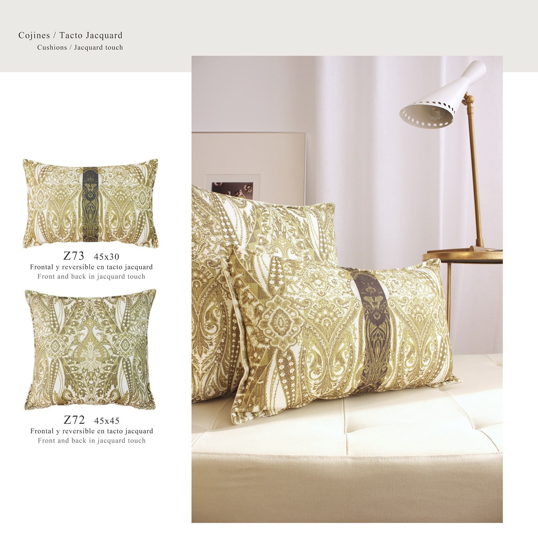 Almofada com uma frente macia e textura reversível com toque jacquard.